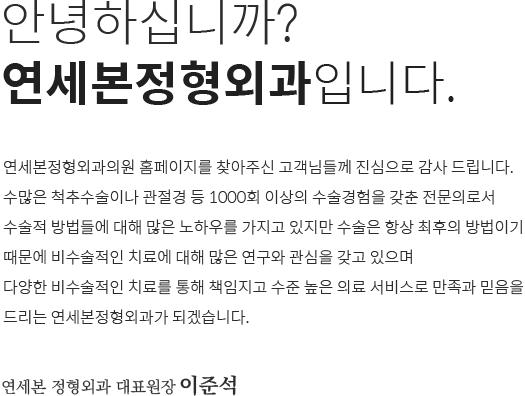 - 연세대학교 의과대학 졸업 - 국립경찰병원 수련의 - 서울대학교 소아 정형외과 연수 - 원자력병원 암센터연수 - 하남서울정형외과 부원장 - 수원서울정형외과 원장